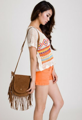The gold beaded gray tank, purple string bikini top & purse are also from the outlet center. I especially love purses with the fringe; it reminds me of something I would have taken to school when I dressed as Pocahontas for Halloween as a kid. It also reminds me of my Aunt Jennifer because she loves fringe. A few years ago, she said to me, "So I guess fringe is out of style, huh?" I think we are both glad that its making a come back. But I guess you should know that we are also both strange enough to wear fringe even when its not in style.