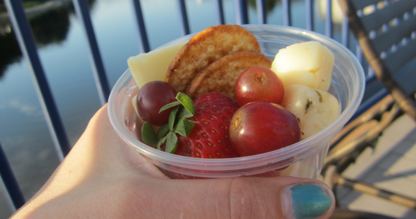 Fortunately, the Hudsonville wine happens to be very fruity - even I can drink it like a lady (if you can look past the plastic SOLO cups). After working our way down the wine list, I decided the raspberry wine is my favorite. We also found a table of snack foods. Instant free Dinner! Patrick dropped by after work and the five of us dined on cheeses, fruits, and wine while relaxing by the pool: ideal summer evening.